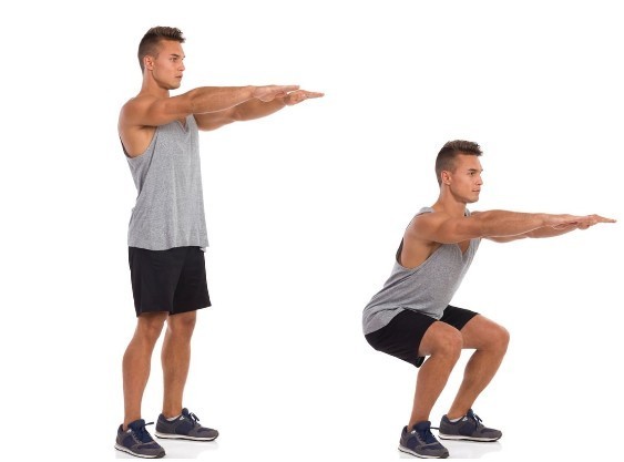 Tip: 무릎이 발끝을 넘지 않도록 주의하고, 허리를 곧게 펴줘야 함